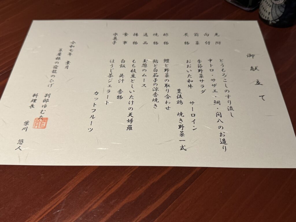 龍のひげでは、由布院の食材を使った創作懐石料理を味わえます。